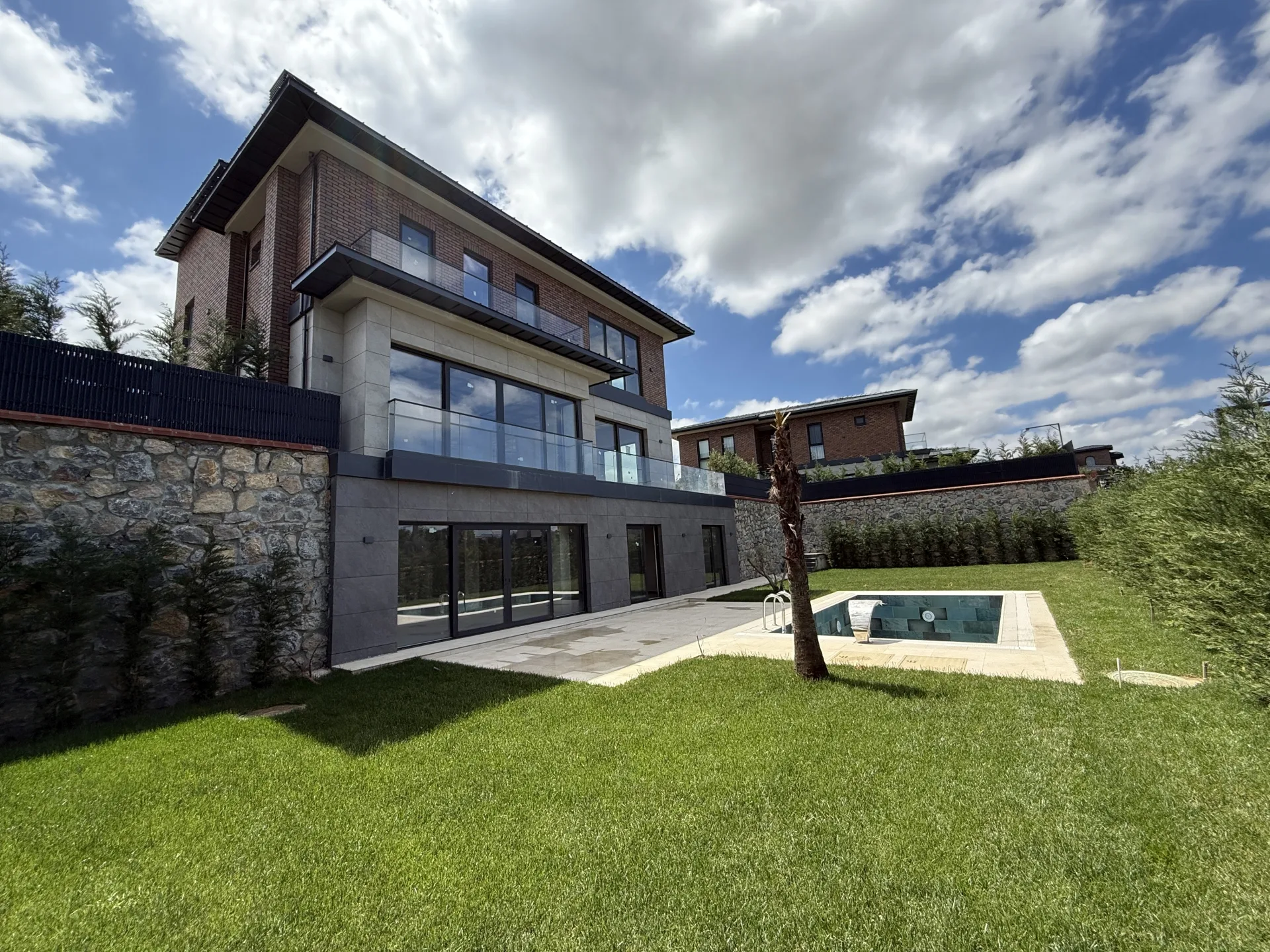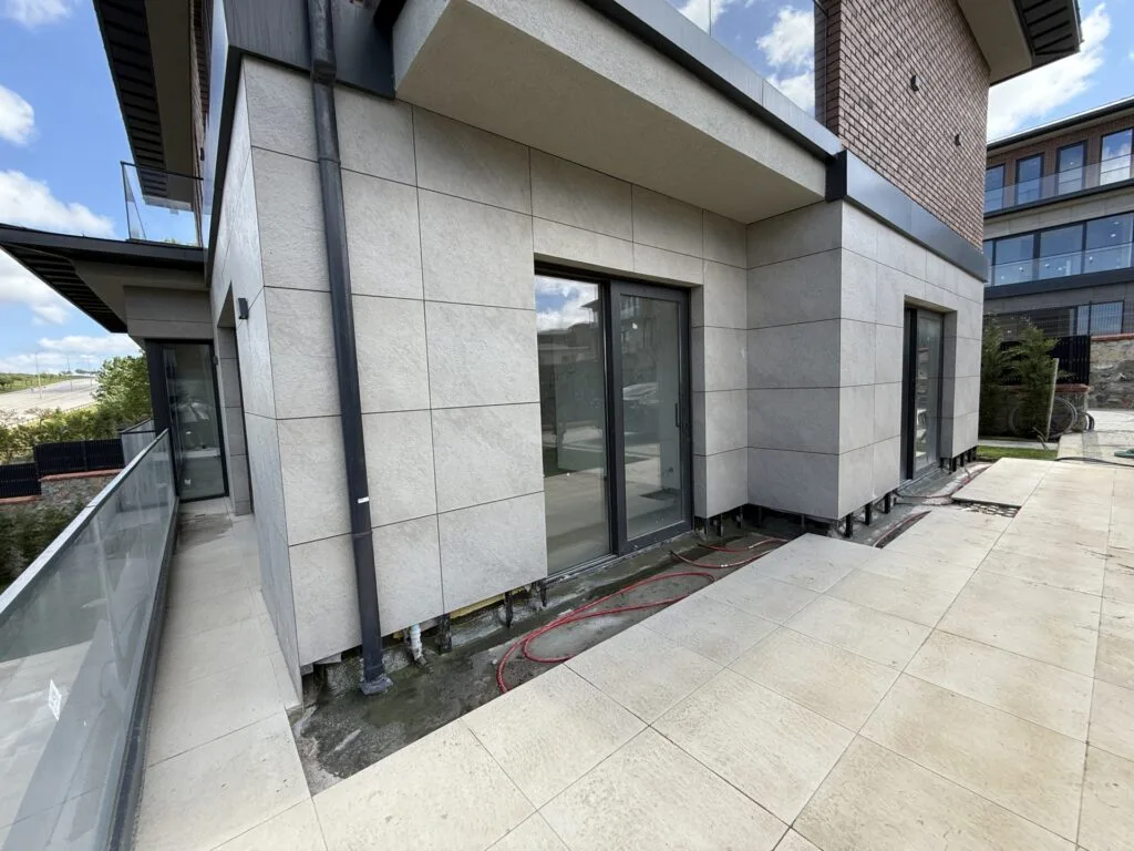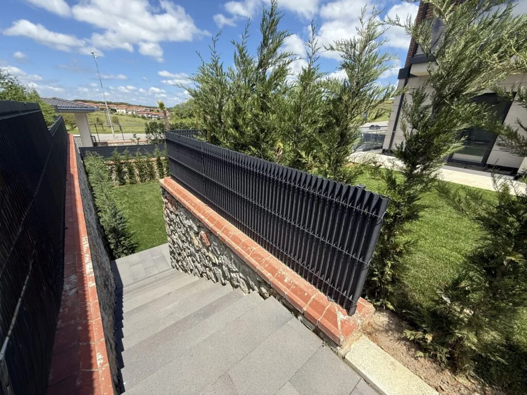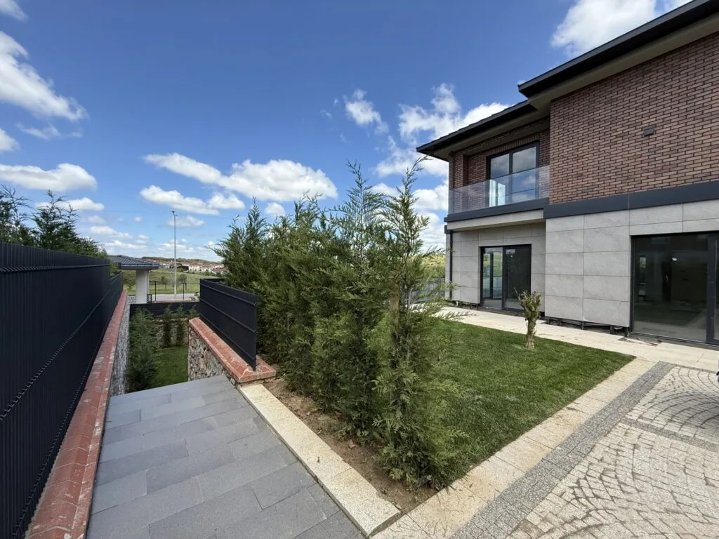 Bahçe peyzajı tamamlanmış, etrafı leylandilerle çevrilmiş ve özel PP çit içi kaplama ile çevrilmiştir. Bahçede elektrik ve sulama alt yapısı yapılmıştır.
