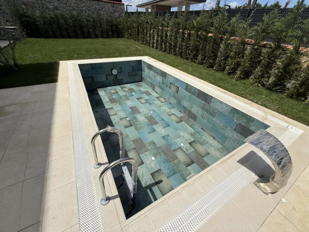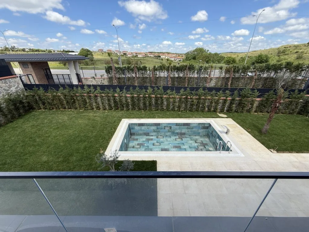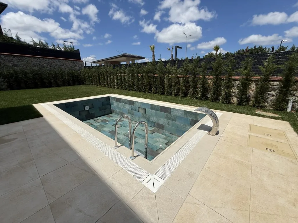 Bahçede bulunan havuz yaz – kış kullanıma uygun olarak dizayn edilmiştir. 3,5 x 7m boyutlarındaki havuz ısıtmalı olup bakım ve tuzla sistemi kurulmuş ve telefon ile kumanda edebiliyorsunuz.