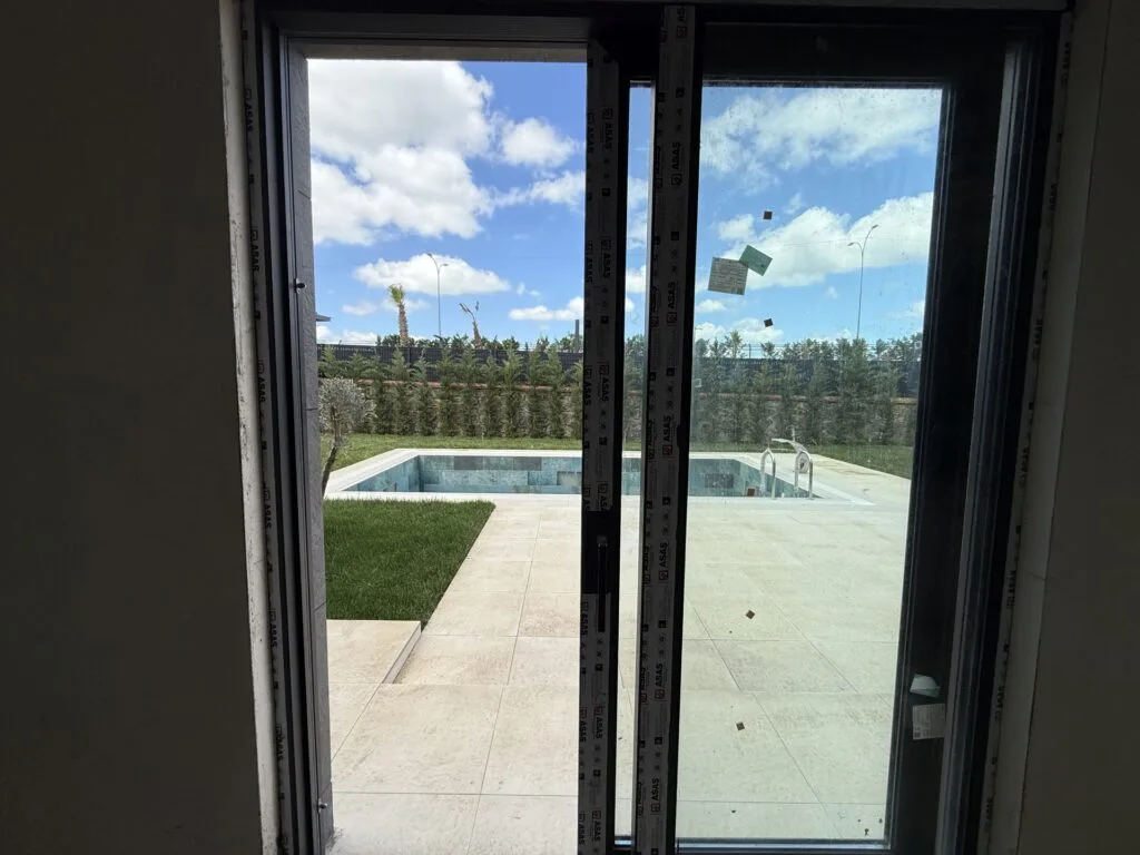 Villa içindeyken huzur ve sakinlik ön planda tutulmuş sessiz cam altyapılı doğramalar, dış ses izolasyonu güçlü bir yalıtım sağlanmıştır.